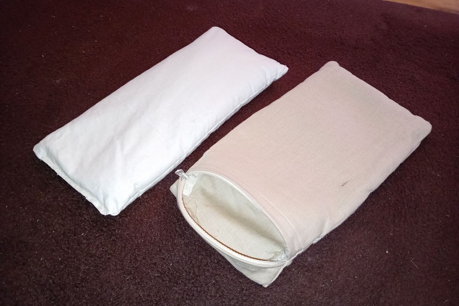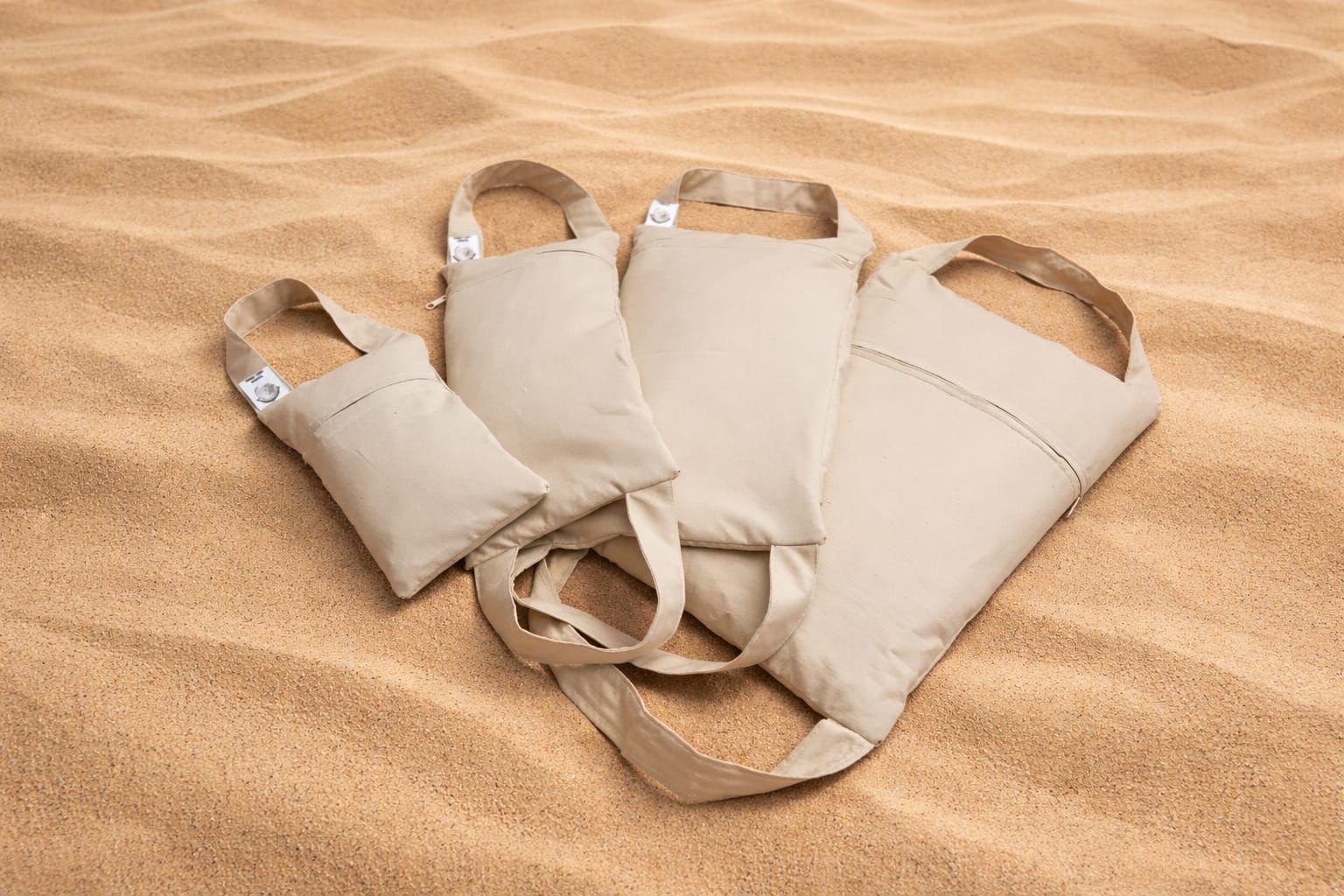 Protože jsem na trhu nenašla zátěžové pytlíky, které by splňovaly všechna má očekávání, rozhodla jsem se začít s jejich vlastní výrobou. Každý sandbag se skládá ze dvou částí – vnitřního napevno obšitého sypku s praným a vysušeným pískem (skvěle drží teplo) a vnějšího snímatelného obalu se zipem. Pratelný obal je vyrobený ze dvou vrstev 100% bavlny a je vybaveny zpevněnými úchyty (velikost S má jen jeden).